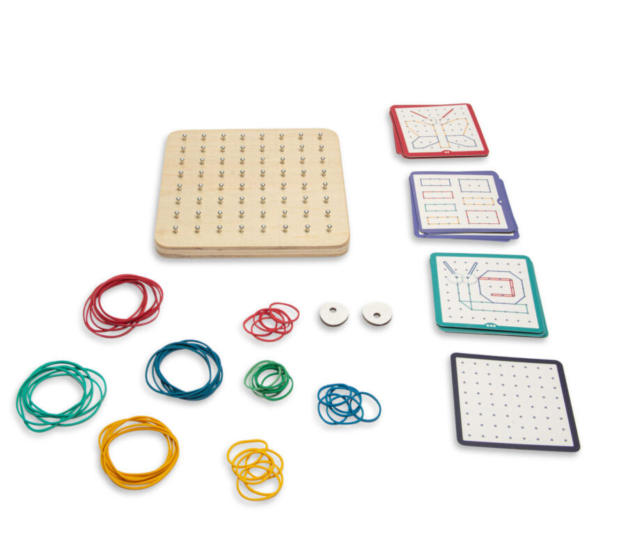 اصنعوا أشكالًا هندسية مذهلة باستخدام لوح المسامير والمطاطات الملونة! لعبة إبداعية رائعة تتيح للأطفال التعرف على الأشكال الهندسية، بناء نماذج وأحرف، وحتى تعلم مفاهيم رياضية مثل التماثل، المحيط، والمساحة.