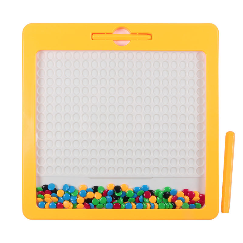 لعبة لوح أزرار مغناطيسية كبير + قلم مغناطيسي لنقل النقاط المغناطيسية على اللوح. نسخ النماذج على اللوح حسب اللون والشكل باستخدام القلم المغناطيسي. لا يمكن إدخال بطاقات النموذج في اللوح!