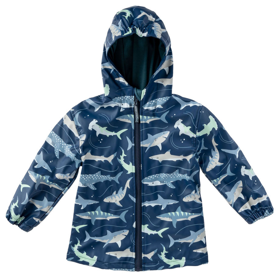 لا تدعوا المطر يفسد أيام المرح العائلية! جهّزوا صغاركم لأجواء الشتاء مع معطف المطر قروش بالأزرق من Stephen Joseph!